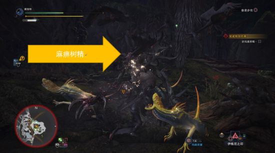 击退几只非常敏捷的凶柴龙,调查并破坏图腾后树精出现,战斗中多多使用伊格尼之印让树精造成硬直。