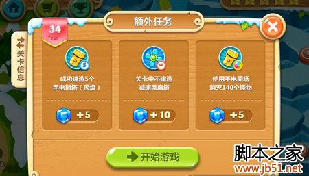 1、 开局的时候要建造 一个多重箭来辅助手电筒塔,然后在使用手电筒塔来清除旁边的道具,扩宽位置。
