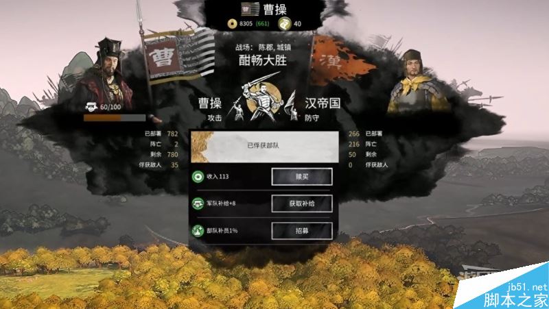 结算画面中,可以选择让敌军用钱赎买俘虏,或者换取军队补给,或者直接将其招募补充入自己的部队。