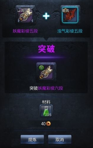 收集到指定的武器后就可以进行突破,突破时还需要消耗一些特殊材料才能完成。