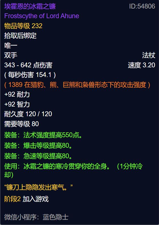 【公式:附魔武器-死亡霜冻】,附魔的小伙伴可别错过。