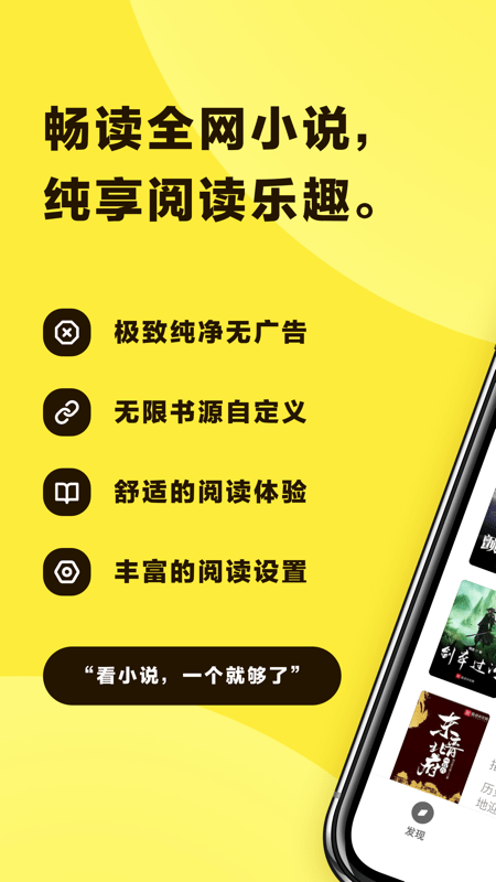 都市爽文、玄幻修仙、言情穿越、武侠世界,各类热门好书应有尽有,按偏好添加书源,看小说,一个就够了。