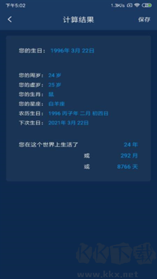 2、简单方便的操作功能,轻松计算各种年龄,纪念日等,让你不错过任何一天。