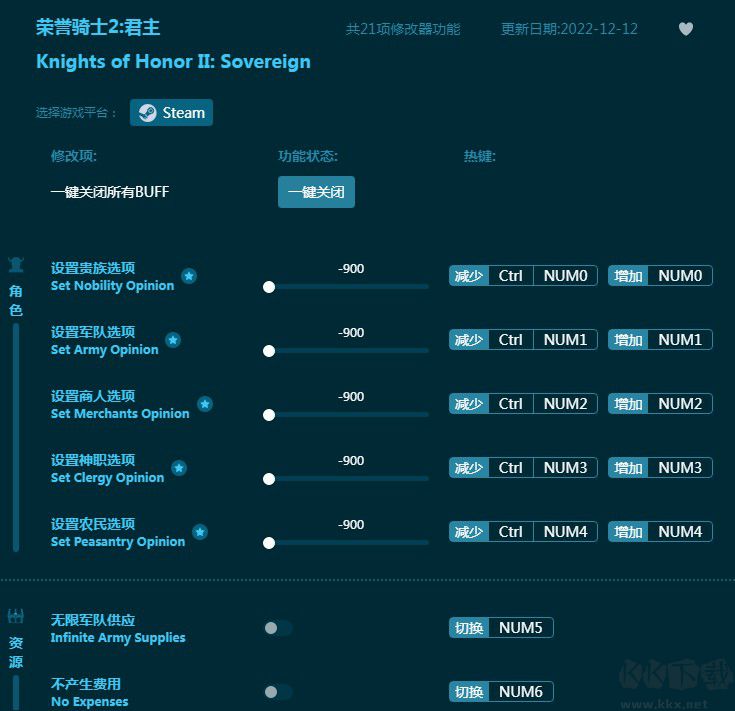 - 特殊功能包括无限军队供应、不产生费用等。