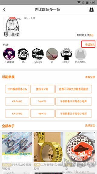 6、社团功能:cpp摊主及游客都可以选择自己喜欢的社团加入,也可以随时了解自己喜爱的画手作者属于哪个社团,在方便扫本的同时也能和作者拉近关系哦~
