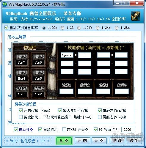其他设置:自动开图,声音提示,F7/F8开关图,F9视野扩大