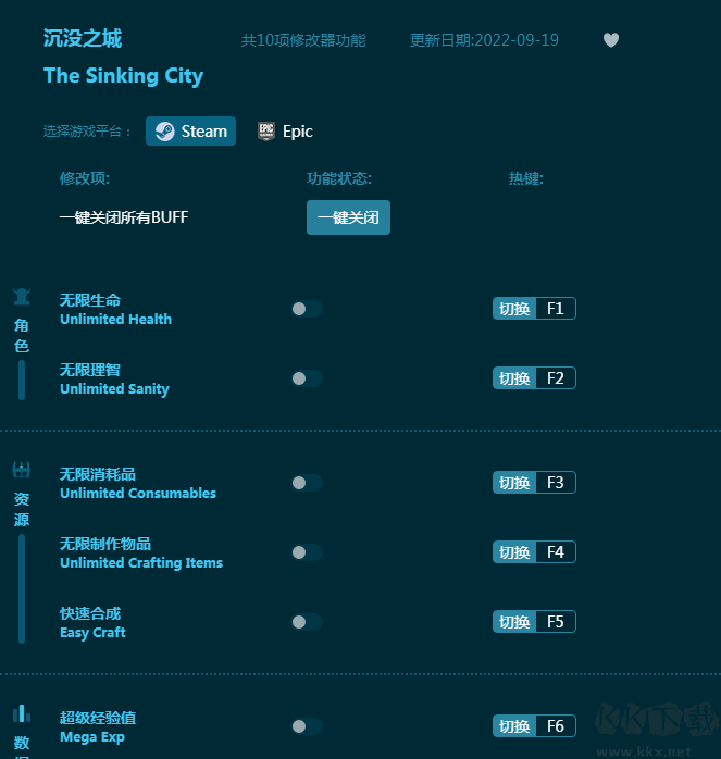 #沉没之城九项修改器简介