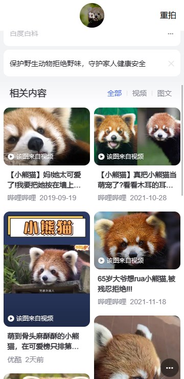 2、通过提取图片特征,搜索对应的图片,在互联网上找到与该图片相同或相似的其他图片资源,同时为用户找到图片背后的相关信息。