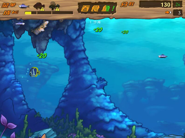 吞食鱼,又称大鱼吃小鱼,是由Popcap Games 于2006年发布的一款免费的动作类小游戏。最新版本支持摄像头操作游戏。《吞食鱼2:海滩危机(Feeding Frenzy 2)》游戏场景不止在水下,还提升到了水面,跳出水面吃虫子,还要防止落入大鸟的嘴中,整个游戏过程也是有故事情节的,最终是追踪BOSS鱼,并将其消灭。