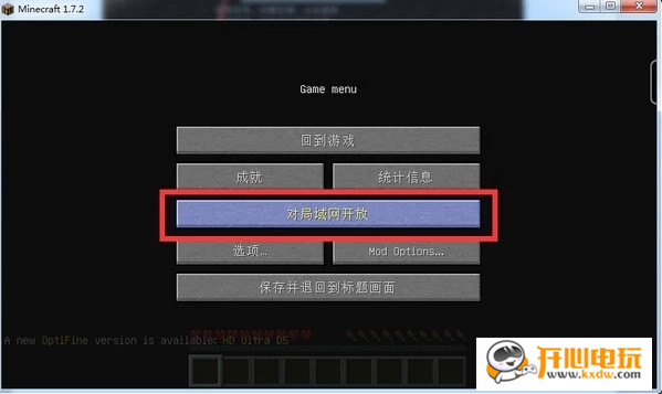 5.创建好世界的小伙伴(即主机),进入游戏世界后,点击“esc键”,选择“对局域网开放”,选择好设置之后,再点击“创建一个局域网世界”。