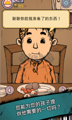 4、在游戏中搜集食物,工作赚钱,同时帮孩子做饭、缝补衣物,陪孩子一起玩。