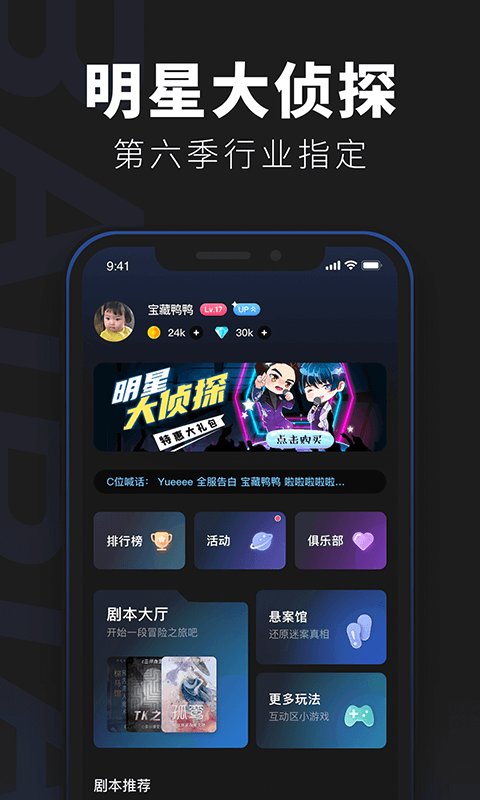 每一次你都会拿到一份新剧本,拥有全新的人物设定。通过阅读剧情故事,代入相对应的角色,通过与其他玩家飙演技、实时语音聊天来获得信息,通过在不同场景搜索线索,找出证据。推理与演技将是你的致胜法宝,找到隐藏在你们中间的嫌疑人,并还原故事的真相!每一次体验犹如看一本小说,看一场电影,出演一幕话剧。总之希望你能愉快的玩耍,开心地交友